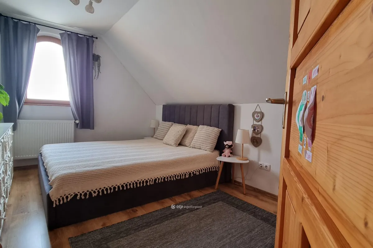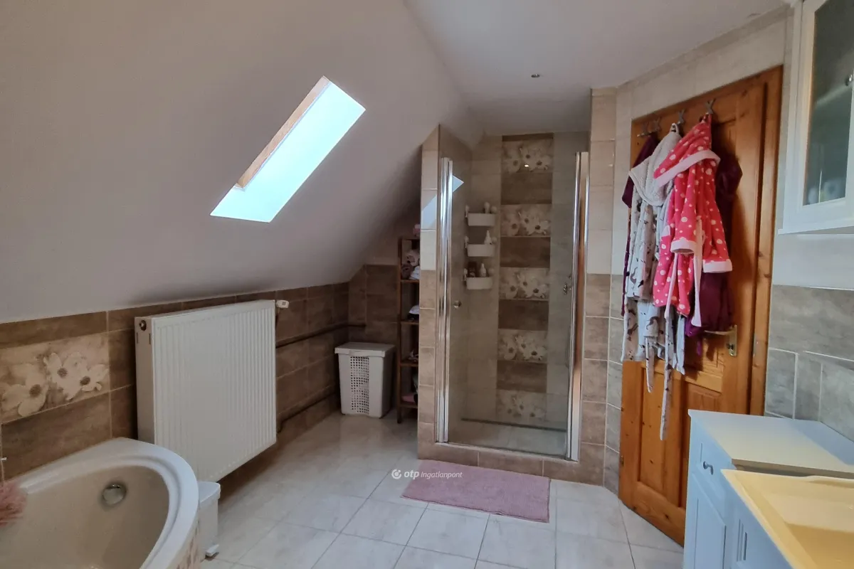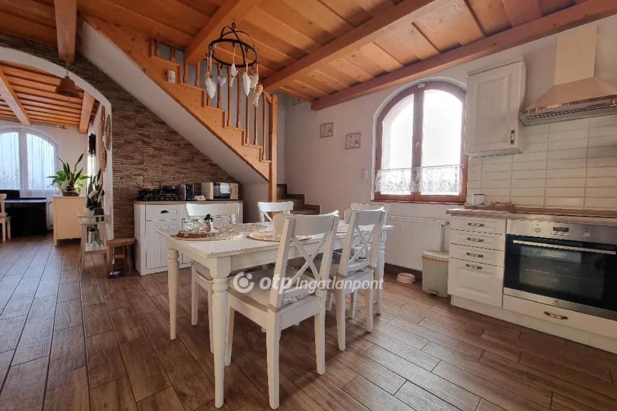 A természet közelségére, nyugodt, csendes otthonra vágyik vagy panorámás kilátásra a Bakonyban? Vásárolja meg ezt a Bakonyjákón található, egyedi hangulatú, vintage életérzés sugárzó családi házat! Ne habozzon egyeztessünk időpontot még ma! Bakonyjákó békés, szinte időtlen környezetében kínáljuk eladásra az 1999-ben épült, 148,1 m?-es családi házat 1200 m2 nagyságú telken. A ház elrendezése kényelmes és otthonos, mindenki megtalálja benne saját kuckóját: a felső szinten négy félszoba, egy fürdőszoba és egy külön WC és közlekedő található. Minden szobából csodás kilátásban gyönyörködhetünk. Az alsó szinten egy tágas nappali konyha-étkező fogad bennünk az előszobából belépve, amelyhez fürdőszoba és praktikus kamra kapcsolódik. A ház további részében garázs kapott még helyet. A konyha modern, kiválóan felszerelt. A nappalihoz tágas terasz társul, ahonnan parkosított udvarra léphetünk, ahol dézsafürdőben vagy a kinti pihenőhelyen csodálhatjuk a Bakonyt. A 1200 m?-es udvar igazi gyöngyszem: egyik oldalát hatalmas, öreg tölgyfák szegélyezik, amelyek árnyékukkal és jelenlétükkel a régi vidéki porták hangulatát idézik. A belső tér 2019-ben teljes körű felújításon esett át. A fűtést központi fűtéssel, radiátoros hőleadással, új, 2025-ben vásárolt Saunier Duval gázkazán és egy egyedi, kézzel építettet gyönyörű cserépkályha biztosítja, amely nemcsak melegít, hanem különleges hangulatot is ad a háznak. A födém új, kifogástalan, a nyílászárók fa, belül fenyőfa, kívül tölgyfa anyagúak. A település a Bakonyalján fekszik, Veszprém vármegyében, a legközelebbi város a mintegy 17 kilométerre fekvő Pápa. Ajka 15-20 perc távolságra található, a Balaton pedig 30 perc alatt elérhető. A környék rendkívül csendes, kevés lakóval, így a természet közelsége és a nyugalom mindennapos élmény. Ez a ház azoknak szól, akik értékelik a vidéki élet egyszerű szépségét, a természet ölelését. Bakonyjákó különleges fekvésű, csendes, gondozott, közel 700 főt számláló bakonyi település Pápától délkeletre, közvetlenül a 83. számú főút mellett, a Bitva -patak völgyében. A falut körül ölelő festői környezet, a túraútvonalak, látnivalók, rendezvények remek kikapcsolódást ígérnek az ide látogatóknak. A falu kommunális infrastruktúrája (víz, villany, gáz, szennyvízhálózat, vezetékes telefon, internet) teljes egészében kiépített. Belterületünkön jó minőségű, szilárd burkolatú úthálózat jó közlekedési feltételeket biztosít az itt lakóknak és az ide látogatóknak egyaránt. A településen óvoda, iskola, posta, bolt megtalálható. A ház elhelyezkedése szempontjából meglehetősen jó adottságokkal rendelkezik, tágas, világos terek és nagy udvar tartozik hozzá. Ajánlom mindazon vevők részére, akik egy szép, családias, nyugodt részen kívánnak élni, távol a város zajától. Az OTP Ingatlanpont teljes körű ügyintézéssel áll az eladók és a vevők rendelkezésére. A kínálatunkból választott ingatlan finanszírozásához kedvezményes hitelkonstrukciót kínálunk. Ez az ingatlan megfelel a fix 3%-os Otthon Start Hitelprogram feltételeinek! Az adásvételi szerződés megkötéséhez igény szerint megbízható ügyvédi közreműködést biztosítunk, és segítséget nyújtunk az adásvételhez kapcsolódó ügyek intézéséhez is. A hirdetési szöveg és képek az Otp Ingatlanpont tulajdona. Az ingatlan nagyon hamar várja új lakóit! Amennyiben felkeltette érdeklődését az általam kínált ingatlan, keressen bizalommal.