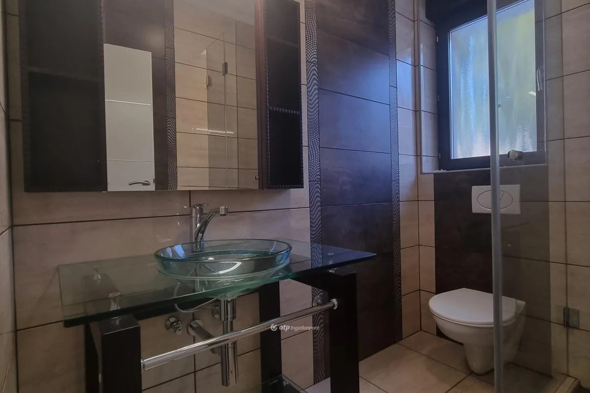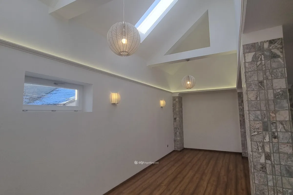 Teljes körűen felújított családi ház modern kényelemmel. Központi elhelyezkedés! Eladó Veszprém vármegye, Pápa város frekventáltabb városrészében egy modern teljes körűen, igényesen felújított családi ház. Elrendezés tekintetében az ingatlan áll: a ház központi részét képező egy légtérben elhelyezkedő hatalmas alapterületű teraszkapcsolatos nappali-konyha-étkezőből, amelyben a természetes és mesterséges fény összhangját élvezhetjük a csodás burkolatok mellett, két utca felé néző szobából, amelyek közelében egy folyosó által elválasztva helyezkedik el az egyik gyönyörű fürdőszoba, fél emelettel feljebb elkülönülve egy előszobából nyílik egy erkélykapcsolatos elkülönülést és nyugalmat biztositó hálószoba, amelyhez gardróbszoba kapcsolódik valamint a ház másik fürdőszobálya, az ingatlanba tágas előszobán át léphet be az ide látogató, garázs, mosókonyha, gépház kapcsolódik még a jól megtervezett ingatlanhoz a kényelmet szolgálva. Fedezze fel ezt a lenyűgöző, 185,5 nm-es családi házat 354 nm-es telken, ahol minden részlet a komfortra és energiatakarékosságra épül. Az ingatlant a legjobb anyagok felhasználásával, tulajdonosa saját célra építette. A ház teljes felújításon esett keresztül: új tető, vízhálózat, szennyvíz, gázvezeték, elektromos hálózat és fűtési rendszer. Beépítésre került egy modern kondenzációs gázkazán, amely szobánként Fan Coil rendszerű fűtés, fűtő egységgel működik, ezzel a legenergiahatékonyabb módon szabályozható minden helyiségben. Kiemelt extrák: Nappali: Fatüzelésű 14 kW-os látványkandalló nagy üvegajtóval, Légkondicionálás: plusz Fisher hőszivatyús inverteres klíma (5 kW + 3,5 kW hűtő-fűtő). Ablakok: Lehuzható rovarhálóval felszerelt, hőszigetelt, motoros redőnyök távvezérléssel. Szigetelés: Padlás 25-40 cm kőzetgyapottal teljes körűen szigetelve. Világítás: Kizárólag LED energiahatékony megoldások. Garázs: Fűtött elektromos kapus, mosókonyhával (csak gépeket kell rákötni), mellette 7 nm-es gépház tárolásra. A kaputól a garázsig végig térkövön közelithető meg az udvar. Tágas elrendezés:60 nm-es konyha-nappali-étkező: Igényes burkolat, olasz márvánnyal borított oszlopok, kilátás a 8 nm-es márvánnyal burkolt teraszra (akár 6 főre!). Előszoba: Garderobe-sarok, kapunyitó, videotelefon. Hálók: Két utcai háló + fürdő; master bedroom előszobával, saját fürdővel, gardróbbal és privát terasszal (lépcsőn közelíthető). Kert: Igényes tervezésű, tökéletes kerti partikhoz vagy nyugodt olvasáshoz. Díszfák, virágok teszik otthonossá a gyönyörű kertrészt. Kiváló lokáció: Vasútállomás 200 m, színház 200 m, Esterházy-kastély angol parkja + játszótér 250 m, Fő tér 400 m, piac 500 m. Az OTP Ingatlanpont teljes körű ügyintézéssel áll az eladók és a vevők rendelkezésére. A kínálatunkból választott ingatlan finanszírozásához kedvezményes hitelkonstrukciót kínálunk. Az ingatlan megfelel a fix 3%-os Otthon Start Hitelprogram feltételeinek! Az adásvételi szerződés megkötéséhez igény szerint megbízható ügyvédi közreműködést biztosítunk, és segítséget nyújtunk az adásvételhez kapcsolódó ügyek intézéséhez is. Az ingatlanról készült alaprajz, illetve fényképfelvételek az Otp ingatlanpont szellemi tulajdonát képezik. Ez az ingatlan ideális családoknak vagy befektetőknek költözzön be és élvezze a modern luxust!