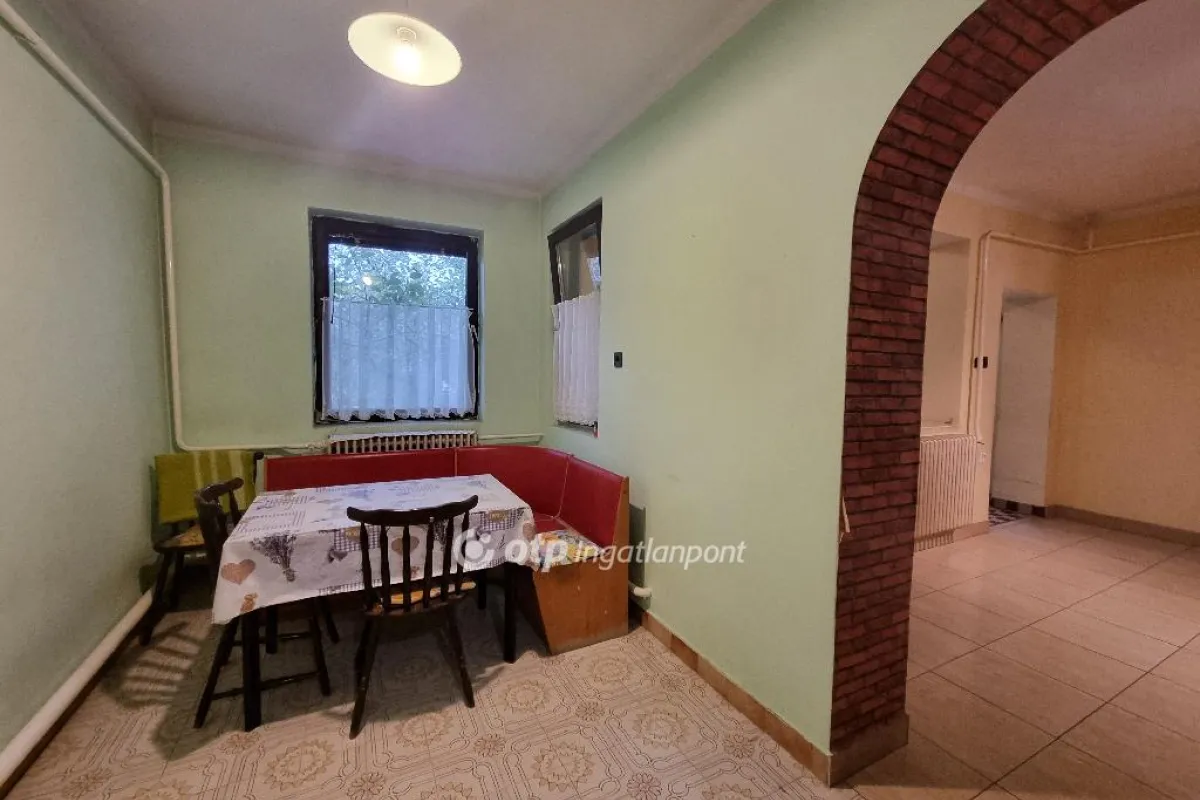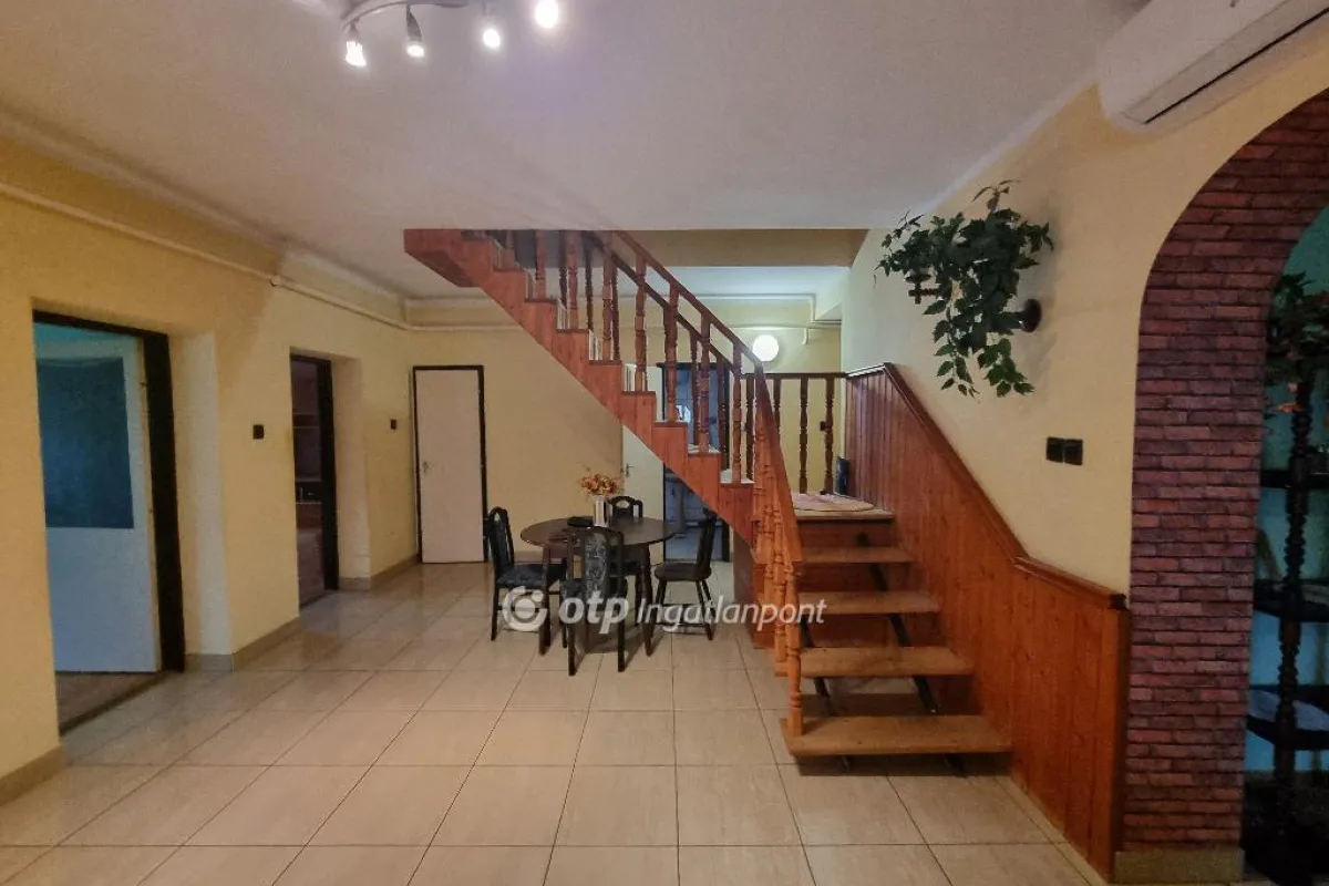Eladásra kínálok Egyházaskesző csendes, természetközeli részén egy 174,06 m2-es, remek elrendezésű, igazán otthonos kétszintes 1990-ben épült családi házat, 1 354 m2-es telken. A település Pápától 20 km-re északnyugatra fekszik a Rába-folyó árterében. A Pápa-Csorna vasútvonal Rábahíd megállója 2 km-re van. A ház elhelyezkedése szempontjából meglehetősen jó adottságokkal rendelkezik, tágas, világos terek és nagy udvar tartozik hozzá. Elosztását tekintve áll két tágas, világos napaliból, 3 teljes értékű, külön bejáratú szobából, 1 kívülről erkély kapcsolatos szobából, étkezőből, konyhából, kamrából, két fürdőszobából, WC-ből, közlekedő helyiségekből és fedett teraszból, szépfogóból. A lenti és az emeleti lakóteret egy gyönyörű, lépcső köti össze. A helyiségek burkolata: szobák laminált parketta, a többi helyiség járólap boritású. A ház további részében 2 autóbeállós garázs, kazánház, nyárikonyha, és tároló helységek foglalnak helyet. A nyílászárók jó állapotúak, redőnnyel felszereltek. A ház melegéről egy vegyes tüzelésű kazán gondoskodik, radiátoros hőleadással valamint hűtő-fűtő klíma. A meleg vizet villanybojler biztosítja. Kert része füvesített, az udvar teljesen rendezett, körbekeritett, gyümölcsfákkal, magas-ágyáson művelt veteményes kerttel, fúrt kúttal. A település nem messze található Pápától, Csornától és Győrtől. A környék kiváló közlekedési lehetőségekkel bír, a természetközeli környezet és a falusias nyugalom pedig ideális választás azoknak, akik békésebb életre vágynak, de szeretnének nagyobb városokhoz is közel lenni. Ajánlom mindazon vevők részére, akik egy szép, családias, nyugodt részen kívánnak élni, távol a város zajától. Az OTP Ingatlanpont teljes körű ügyintézéssel áll az eladók és a vevők rendelkezésére. A kínálatunkból választott ingatlan finanszírozásához kedvezményes hitelkonstrukciót kínálunk. Az adásvételi szerződés megkötéséhez igény szerint megbízható ügyvédi közreműködést biztosítunk, és segítséget nyújtunk az adásvételhez kapcsolódó ügyek intézéséhez is. Az ingatlanról készült alaprajz, illetve fényképfelvételek az Otp ingatlanpont szellemi tulajdonát képezik. Ne szalassza el ezt a lehetőséget, vásároljon meg az ingatlant! Hívjon ma!