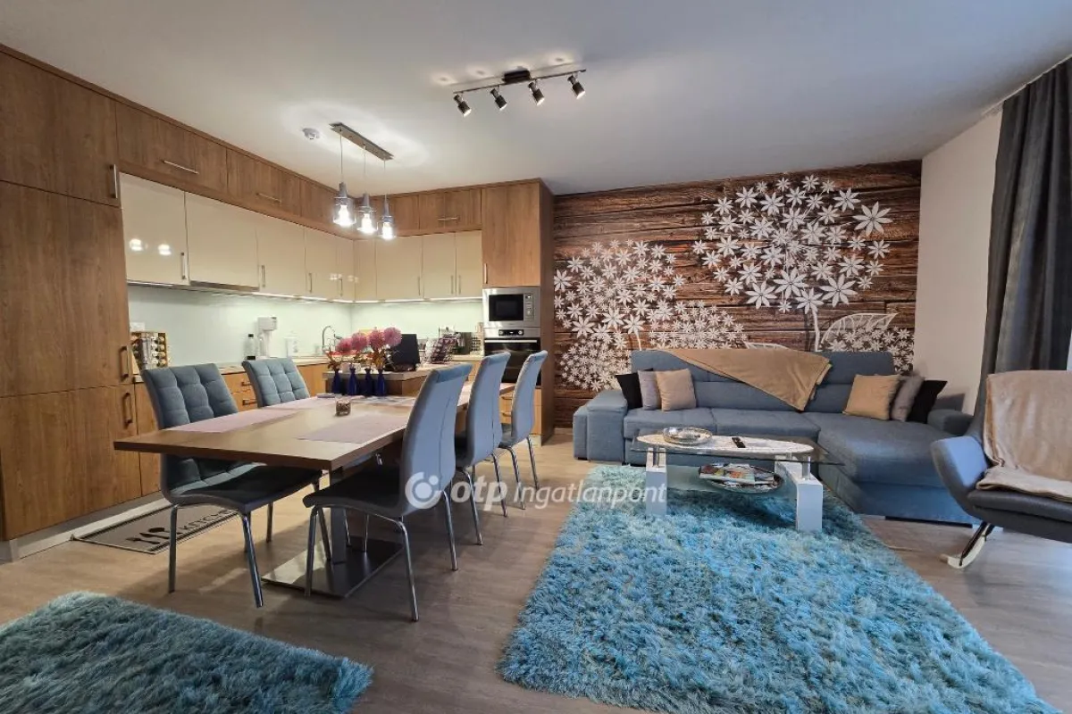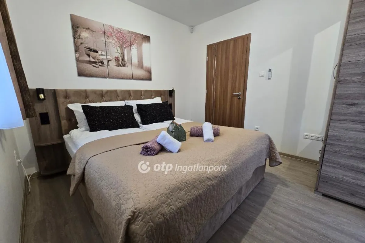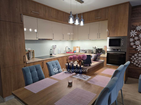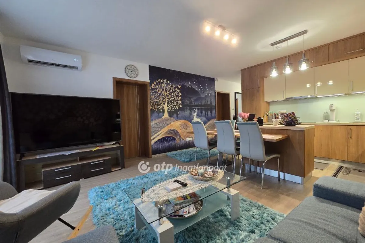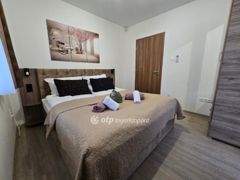 Eladásra kínálunk Sárváron, egy 2023-ban épült, modern megjelenésű, 74 m2 alapterületű, 3 szobás, társasházi lakást, amely teljes berendezéssel együtt kerül értékesítésre, és jelenleg kiválóan működő, bejáratott apartmanként üzemel. Az ingatlan egyik legnagyobb előnye, hogy a vételár a teljes berendezést magában foglalja: a minőségi bútorzat, a berendezési tárgyak, az elektronikai eszközök és a háztartási gépek (a mosó-szárítógép kivételével), továbbá a nagy értékű Wellis jakuzzi és a robotfűnyíró is mind az új tulajdonoshoz kerülnek külön megállapodás nélkül, többletköltség nélkül. Az átgondolt alaprajzi kialakítás a mindennapi kényelmet és a vendégfogadás igényeit egyaránt szolgálja. A lakás három külön nyíló szobával, egy teraszközvetlen kapcsolattal rendelkező amerikai konyhás nappalival, előszobával, háztartási helyiséggel, fürdőszobával, külön WC-vel, valamint egy fedett előteraszból és egy hátsó teraszból áll, amelyek ideálisak a pihenéshez és a kikapcsolódáshoz. A mindössze háromlakásos társasház egy 924 m2-es, fákkal övezett telken helyezkedik el, Sárvár egyik dinamikusan fejlődő, új építésű utcájában. Az ingatlan korszerű építészeti megoldásokkal készült, kiváló energetikai besorolással, amely hosszú távon is alacsony fenntartási költségeket garantál. A lakótér temperálását inverteres Gree klímaberendezések biztosítják, amelyek egy 1011 kW teljesítményű napelemes rendszerhez kapcsolódnak, Fronius inverterrel, éves szaldóelszámolással és még 10 év gyártói garanciával. A melegvízellátásról villanybojler gondoskodik. A gondozott, sövénnyel körbeültetett kertben több zónás automata öntözőrendszer és Husqvarna robotfűnyíró működik, így a zöldfelület folyamatosan rendezett. Az ingatlan teljes területe kamerarendszerrel és riasztóval védett, ami tovább növeli az értékét és a biztonságérzetet. Ez a lakás gyakorlatilag új állapotú, teljesen költségmentes, minden elemében minőségi kivitelezést és felszereltséget képvisel. Befektetési szempontból is kiemelkedő lehetőség, hiszen jelenleg is sikeresen működő apartman, amely az egyik legismertebb szállásfoglaló oldalon 9,9-es értékeléssel rendelkezik köszönhetően a kiváló elosztásnak, a prémium felszereltségnek és a kedvező elhelyezkedésnek. Ez az ingatlan ideális választás lehet azonnali hozamot kereső befektetőknek, illetve azok számára is, akik kompromisszummentes, modern otthont szeretnének Sárváron.