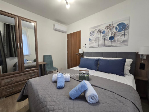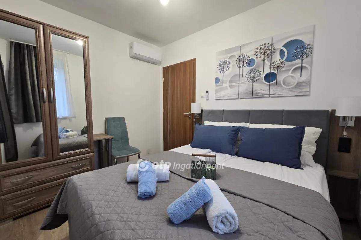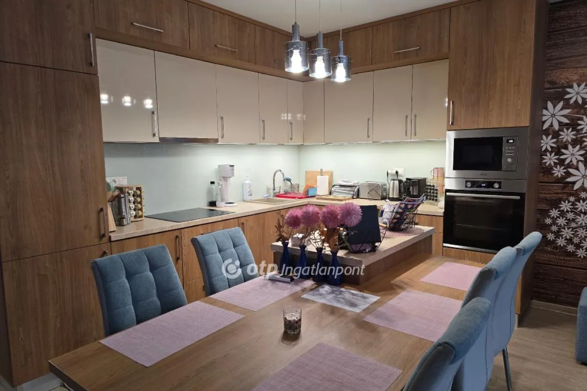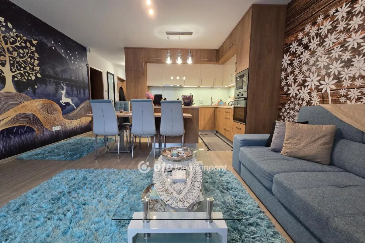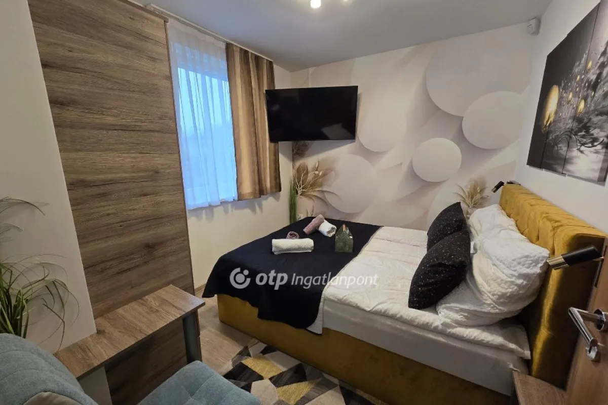 Eladásra kínálunk Sárváron, egy 2023-ban épült, modern megjelenésű, 74 m2 alapterületű, 3 szobás, társasházi lakást, amely teljes berendezéssel együtt kerül értékesítésre, és jelenleg kiválóan működő, bejáratott apartmanként üzemel. Az ingatlan egyik legnagyobb előnye, hogy a vételár a teljes berendezést magában foglalja: a minőségi bútorzat, a berendezési tárgyak, az elektronikai eszközök és a háztartási gépek (a mosó-szárítógép kivételével), továbbá a nagy értékű Wellis jakuzzi és a robotfűnyíró is mind az új tulajdonoshoz kerülnek külön megállapodás nélkül, többletköltség nélkül. Az átgondolt alaprajzi kialakítás a mindennapi kényelmet és a vendégfogadás igényeit egyaránt szolgálja. A lakás három külön nyíló szobával, egy teraszközvetlen kapcsolattal rendelkező amerikai konyhás nappalival, előszobával, háztartási helyiséggel, fürdőszobával, külön WC-vel, valamint egy fedett előteraszból és egy hátsó teraszból áll, amelyek ideálisak a pihenéshez és a kikapcsolódáshoz. A mindössze háromlakásos társasház egy 924 m2-es, fákkal övezett telken helyezkedik el, Sárvár egyik dinamikusan fejlődő, új építésű utcájában. Az ingatlan korszerű építészeti megoldásokkal készült, kiváló energetikai besorolással, amely hosszú távon is alacsony fenntartási költségeket garantál. A lakótér temperálását inverteres Gree klímaberendezések biztosítják, amelyek egy 1011 kW teljesítményű napelemes rendszerhez kapcsolódnak, Fronius inverterrel, éves szaldóelszámolással és még 10 év gyártói garanciával. A melegvízellátásról villanybojler gondoskodik. A gondozott, sövénnyel körbeültetett kertben több zónás automata öntözőrendszer és Husqvarna robotfűnyíró működik, így a zöldfelület folyamatosan rendezett. Az ingatlan teljes területe kamerarendszerrel és riasztóval védett, ami tovább növeli az értékét és a biztonságérzetet. Ez a lakás gyakorlatilag új állapotú, teljesen költségmentes, minden elemében minőségi kivitelezést és felszereltséget képvisel. Befektetési szempontból is kiemelkedő lehetőség, hiszen jelenleg is sikeresen működő apartman, amely az egyik legismertebb szállásfoglaló oldalon 9,9-es értékeléssel rendelkezik köszönhetően a kiváló elosztásnak, a prémium felszereltségnek és a kedvező elhelyezkedésnek. Ez az ingatlan ideális választás lehet azonnali hozamot kereső befektetőknek, illetve azok számára is, akik kompromisszummentes, modern otthont szeretnének Sárváron.