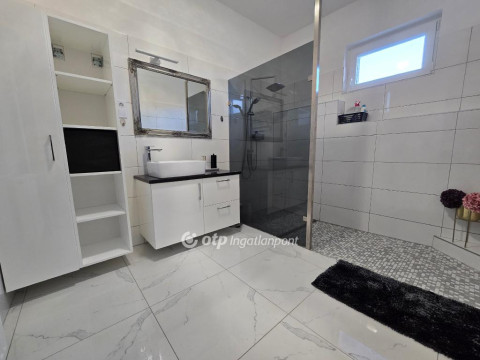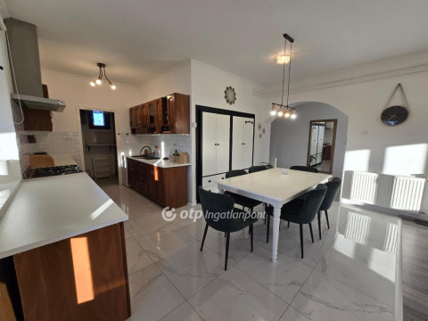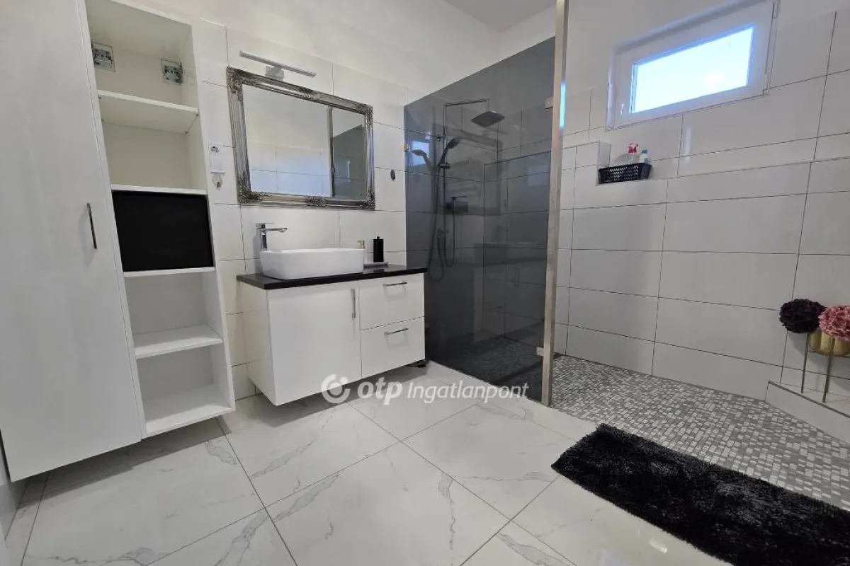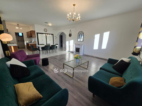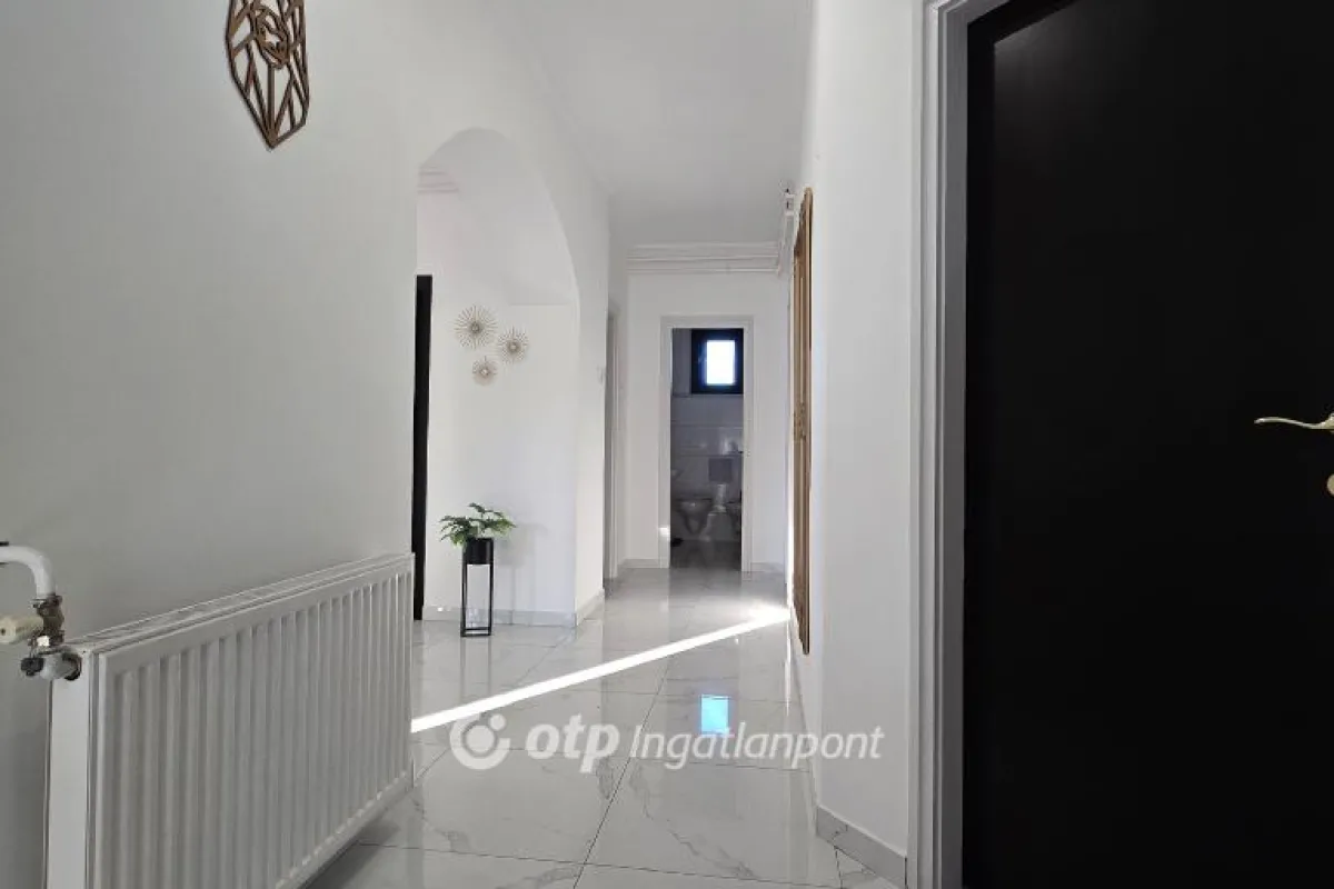 Pápakovácsi csendes, barátságos utcájában eladó ez a 210 m2-es, négy szobás, kimagaslóan tágas és energiatakarékos családi ház, amely kialakításának köszönhetően nagy családok, több autót használók vagy akár otthoni vállalkozást működtetők számára is kiváló választás. Az ingatlan belső kialakítása átgondolt és jól szervezett, a terek elrendezése a mindennapi élet kényelmét és élhetőségét helyezi előtérbe. A teraszkapcsolatos nappali, az étkező és a konyha egy tágas, egybenyitott élettérben kapott helyet, amely világos, barátságos hangulatot teremt, és tökéletes színtere a családi együttléteknek, valamint a vendégek fogadásának. A nappaliból közvetlen kijárat nyílik a teraszra, így a beltéri és kültéri élettér természetes módon kapcsolódik össze. A központi élettérhez három, jól elkülöníthető, kényelmes méretű hálószoba kapcsolódik, biztosítva minden családtag számára a nyugalmat és a megfelelő privát szférát. A funkcionalitást tovább növeli a különálló fürdőszoba, valamint a WC-bidével kialakított mellékhelyiség. A lakótér része egy praktikus kamra is, amely a mindennapi tárolást teszi rendezetté és átláthatóvá. A földszint külön előnye, hogy akár önálló egységként is funkcionálhat. Itt egy világos irodahelyiség, egy további szoba, mosókonyha, valamint zuhanyzóval és WC-vel ellátott fürdő található. Ennek köszönhetően ez a szint kiválóan alkalmas vendégapartman, otthoni munkavégzésre szolgáló tér, vagy akár egy teljesen elkülönített lakrész kialakítására is. Az ingatlan így rugalmasan alkalmazkodik a változó élethelyzetekhez, legyen szó többgenerációs együttélésről vagy otthoni vállalkozásról. Az ingatlan egyik jelentős előnye a fűthető, többautós garázs, amely akár négy gépkocsi számára biztosít kényelmes parkolást, és ehhez még egy második, különálló garázs is kapcsolódik. Mivel az egész épület - beleértve a garázsokat is - fűthető, a földszinti terek igény szerint további lakótérré alakíthatók, így az ingatlan valódi bővítési potenciált kínál. Az ingatlan tulajdonosai az elmúlt években tudatosan, lépésről lépésre korszerűsítették az épületet, kiemelt figyelmet fordítva az energiatakarékos és hosszú távon fenntartható megoldásokra. A kedvező rezsiköltségek alapját a korszerű, két rétegű műanyag nyílászárók, valamint a 10?15 cm vastag homlokzati hőszigetelés és a födémen elhelyezett 30 cm kőzetgyapot szigetelés biztosítja. A fűtést egy néhány éves, 24 kW teljesítményű kondenzációs gázkazán látja el, radiátoros hőleadással, amely megbízható és gazdaságos üzemelést garantál. Az ingatlan 1996-ban épült, masszív, 38 cm vastag Porotherm téglafalazattal, amely stabil szerkezeti alapot ad a háznak. A tető az elmúlt időszakban teljes körű felújításon esett át: új héjazat, tetőfólia és párazárás került kialakításra, esztétikus kasírozott lemezes cserépfedéssel. A belső terek megjelenésére és állapotára szintén hangsúlyt fektettek, így 3-4 éve a lakótér, a fürdőszoba és a WC is felújításon esett át. Az ingatlan ennek köszönhetően jó állapotú, költözhető, jelentősebb felújítást nem igényel. A komfortérzetet tovább növeli a 2023-ban beépített vízlágyító berendezés, amely hatékony védelmet nyújt a vízkövesedéssel szemben. A villamos hálózat korszerűsítése során a betáp 3×32 amperre lett bővítve, valamint az éjszakai áram is rendelkezésre áll, szintén 3×32 amperrel. A nyári időszakban a kellemes hőérzetről két darab klímaberendezés gondoskodik. A biztonságot kiépített kamerarendszer erősíti, amely nyugodt mindennapokat biztosít az itt lakóknak. Összességében egy műszakilag felkészült, igényesen karbantartott családi házról beszélünk. A telek 492 m2 nagyságú, méretéből adódóan könnyen kezelhető, mégis jól kihasználható, praktikus elrendezéssel rendelkezik. A terület gondozott, füvesített, a jelenlegi tulajdonos vakondhálóval teljes körűen védetté tette, így az udvar esztétikus és karbantartott állapotú. A telken fúrt kút található, amely biztosítja a gyümölcsfák és a zöldfelület gazdaságos öntözését, jelentősen csökkentve a fenntartási költségeket. Emellett egy fedett tároló is rendelkezésre áll, amely ideális helyet biztosít a kerti szerszámok és eszközök kulturált elhelyezésére. Ez az ingatlan a masszív építési minőség, a praktikus és jól átgondolt térszervezés, valamint a modern energetikai megoldások együttesével olyan otthont kínál, amely hosszú távon is gazdaságosan fenntartható. Rugalmasan alakítható, bővíthető elrendezése révén kiváló lehetőség mindazok számára, akik kényelmes, nagyvonalú és értékálló családi házat keresnek Pápakovácsiban. A település mindössze néhány percre található Pápától, így a városban elérhető munkahelyek, iskolák, bevásárlóközpontok, egészségügyi intézmények és szolgáltatások gyorsan és egyszerűen elérhetők.